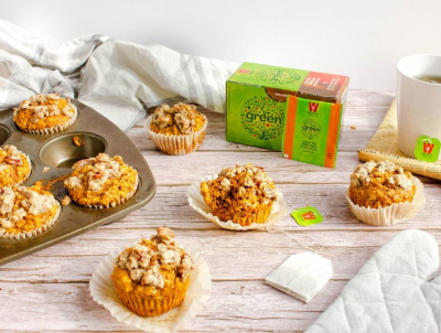 - Pumpkin Green Tea Muffins with Pecan Streusel Topping by Erin Grunstein