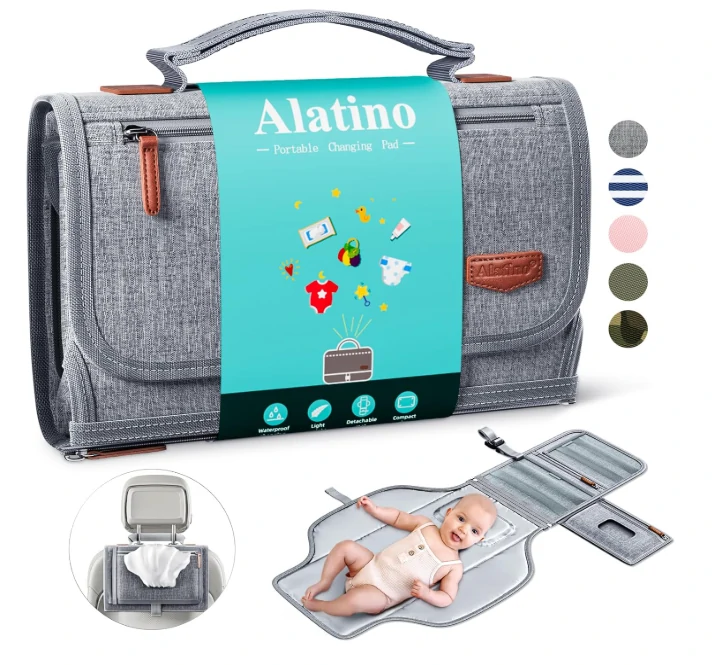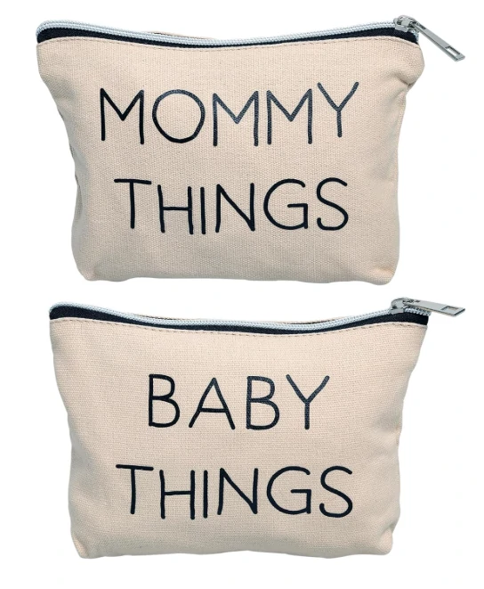 Matching pouches that make it easy to keep mom’s essentials and baby items organized (and easy to grab).