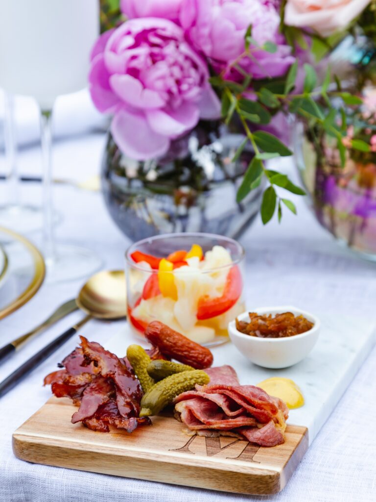 Charcuterie boards are the latest rage, but did you know that the actual word means cold, cured meats? Each meat is paired with a different flavor (sweet, savory, tangy, or spicy) and is accompanied by different textures such as crackers, toast, and pickled vegetables. Here are some directions on how to build your own charcuterie board. My family loved sampling it.