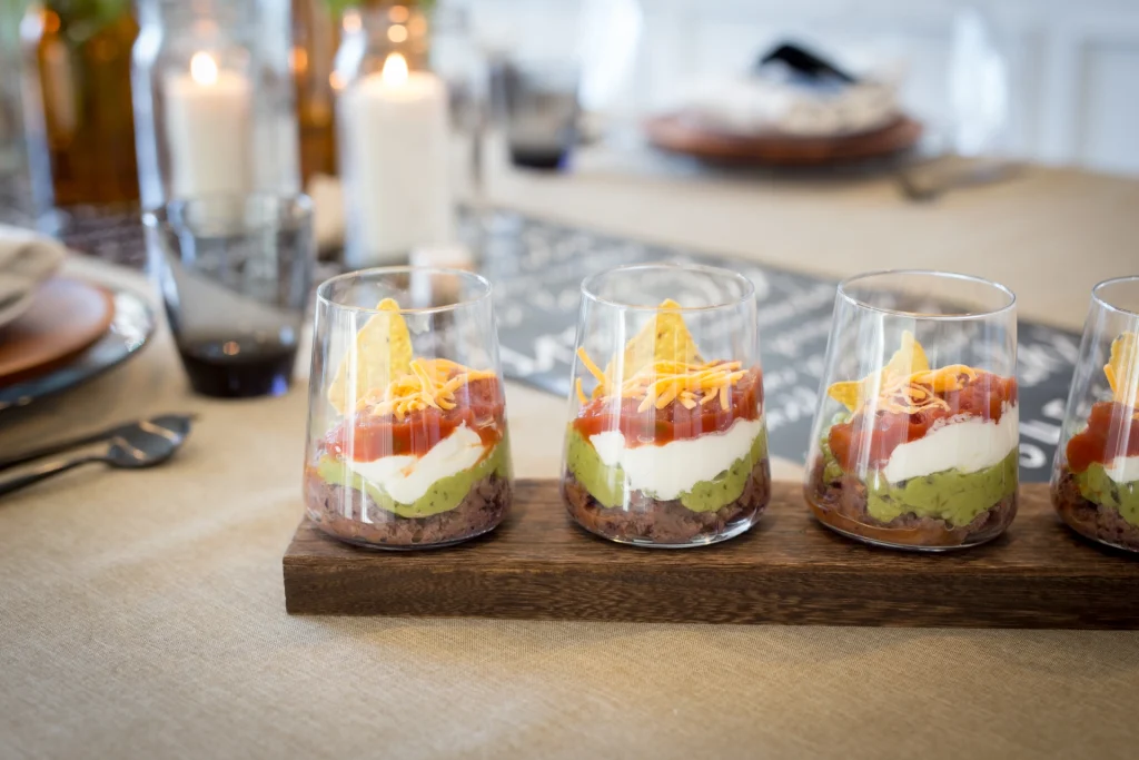 Though I stuck to a more traditional seven-layer dip, you can really use any of your favorite dips—I’ve seen this done with chummus, onion dip, techina, and others.