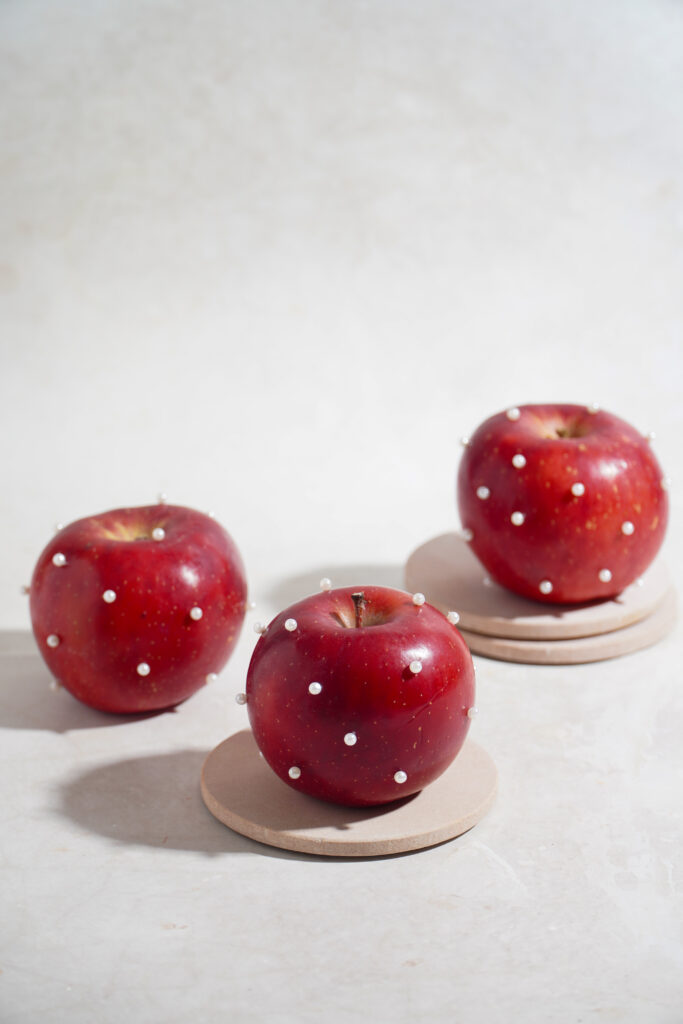 Add a touch of femininity to your table by decorating apples with adhesive pearls. Scatter a few pearl-studded apples down the center of your table for an instant festive touch, or place one on each setting next to a place card. It’s simple, mess-free and so pretty!