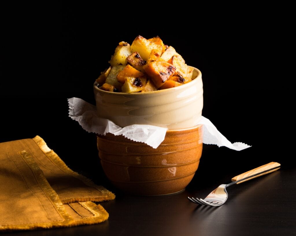 58. Potato-Sweet Potato-Onion Crisp from the Dining In Cookbook