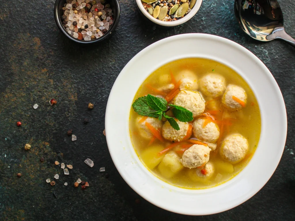 This soup is filling and satisfying and can be a whole meal-in-one. The julienned vegetables give it a beautiful presentation as well. If you don’t eat gebrochts, these chicken balls are the perfect substitute for knaidlach.