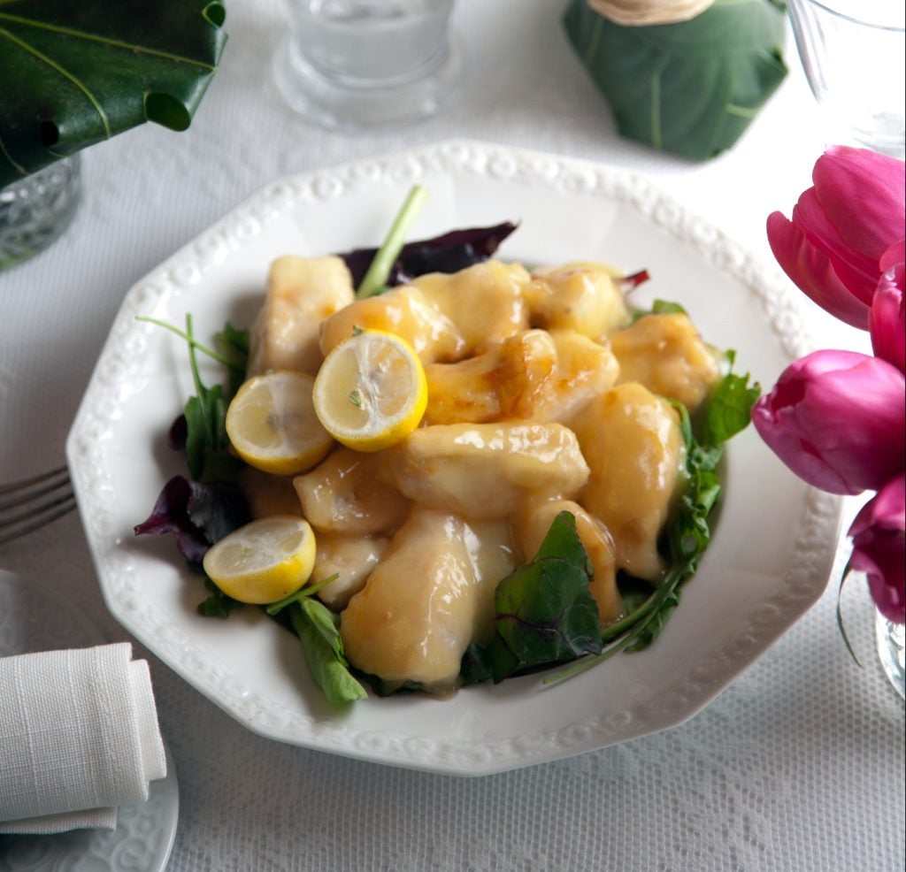 You can serve this as a main dish on its own, or sauté some vegetables for a great stir-fry dish. If making in advance, combine lemon sauce and chicken together before the meal and rewarm, covered, for about 20 minutes. You may need to loosen the sauce with a bit of chicken stock, if making in advance. Just add 3–4 tablespoons of chicken soup when rewarming.