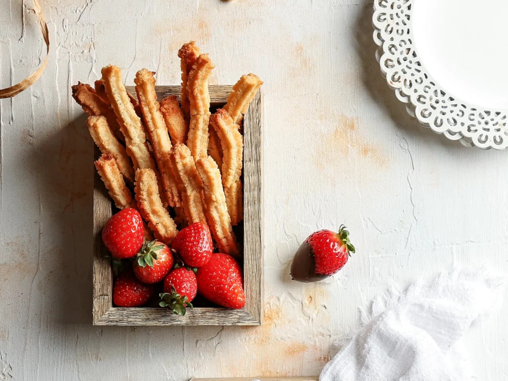 A few months back (on Chanukah, actually), I was curious to see which days of the week Pesach would fall out on this year. When I saw that there would be a whole week of Chol Hamoed, I became excited. Chol Hamoed evenings, when you can sit and relax and enjoy family time, always remind me of Chanukah nights—and that’s how the idea for this recipe was born. One of our family traditions on Chanukah is “churros night,” when we have churros with a spread of different sauces, ice cream flavors, and fruits. By hook or by crook, I knew I had to create something similar for Pesach. Frying on Pesach doesn’t appeal to me, so I developed this baked version.