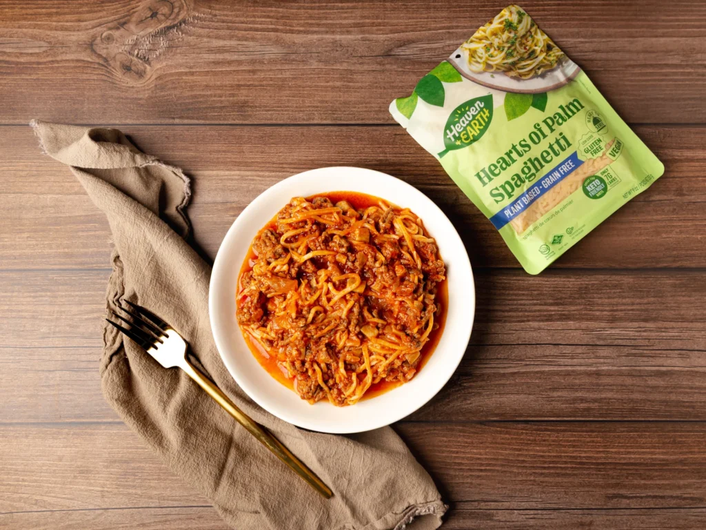 This is the ultimate comfort dish – rich, savory, and full of flavor, yet lightened up with a wholesome twist. Instead of traditional pasta, we’re using Heaven and Earth Hearts of Palm Spaghetti, which soaks up the meaty tomato sauce beautifully while keeping things gluten-free and lower in carbs. The mushrooms add an earthy depth, the spices bring just the right kick, and the sauce simmers into a deliciously cozy hug in a bowl.