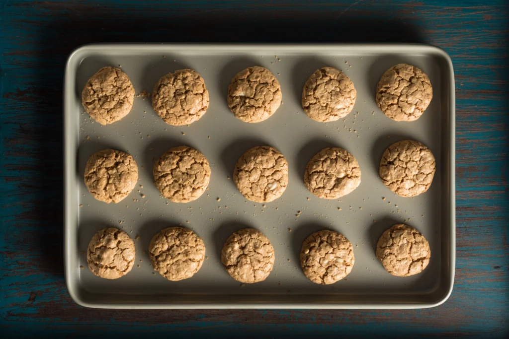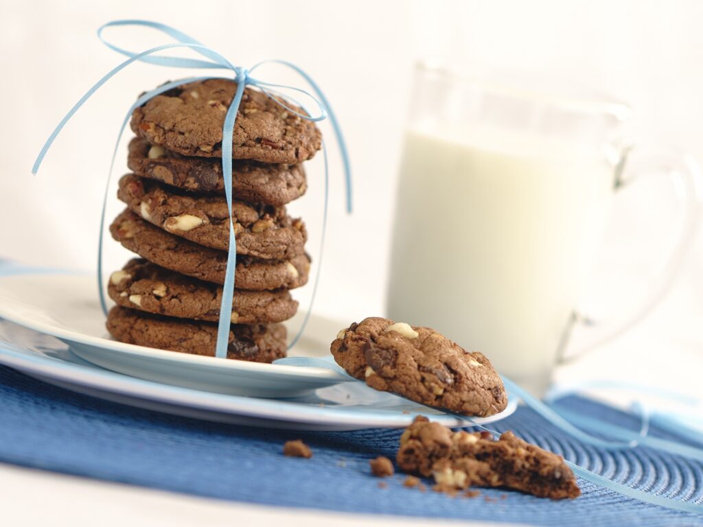 A welcome change from typical chocolate chip cookies. Chewy, crispy, and very tempting. Delicious straight from the freezer. You can’t stop at one!