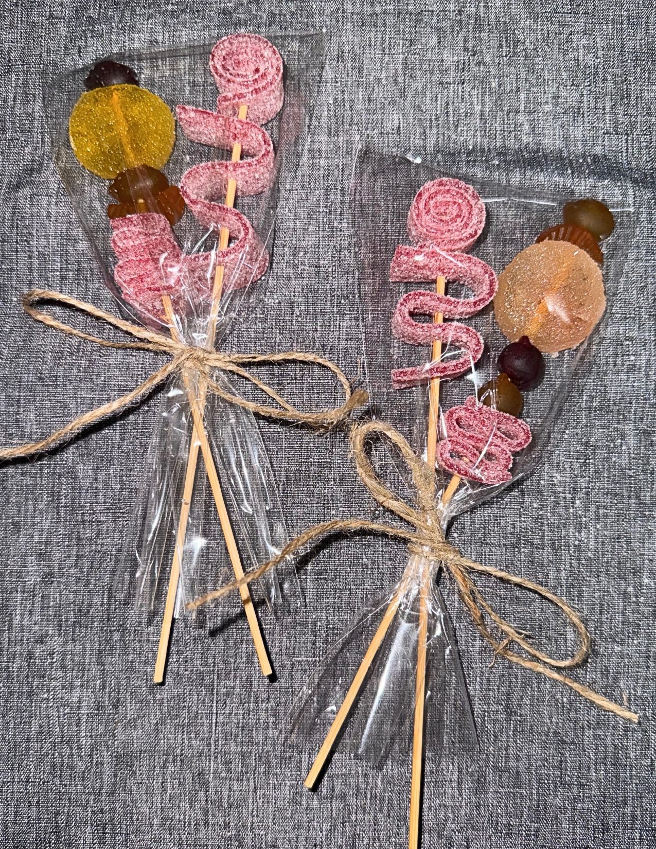 Place both skewers into the bag. Tie it with a piece of string/ribbon. Enjoy!