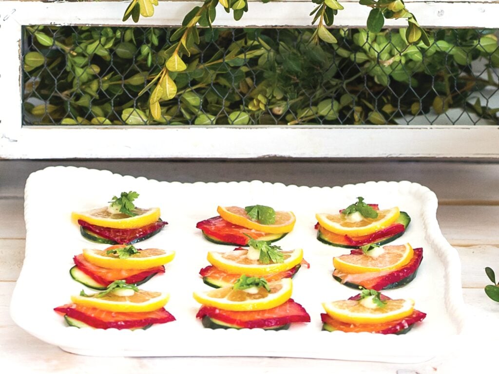 I like to do tuna ceviche at this meal because it’s the third day of Yom Tov. I keep the tuna in the freezer, either pre-cubed, or I cube it on Shabbos morning, and then pour on the dressing right before serving.