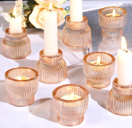 Haviti Gold Glass Candlestick Holders