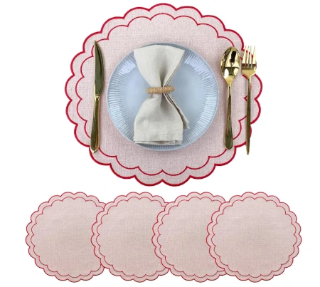 Linen Cotton Scalloped Flower Placemats