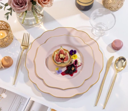 Pink Plastic Plates with Gold Rim
