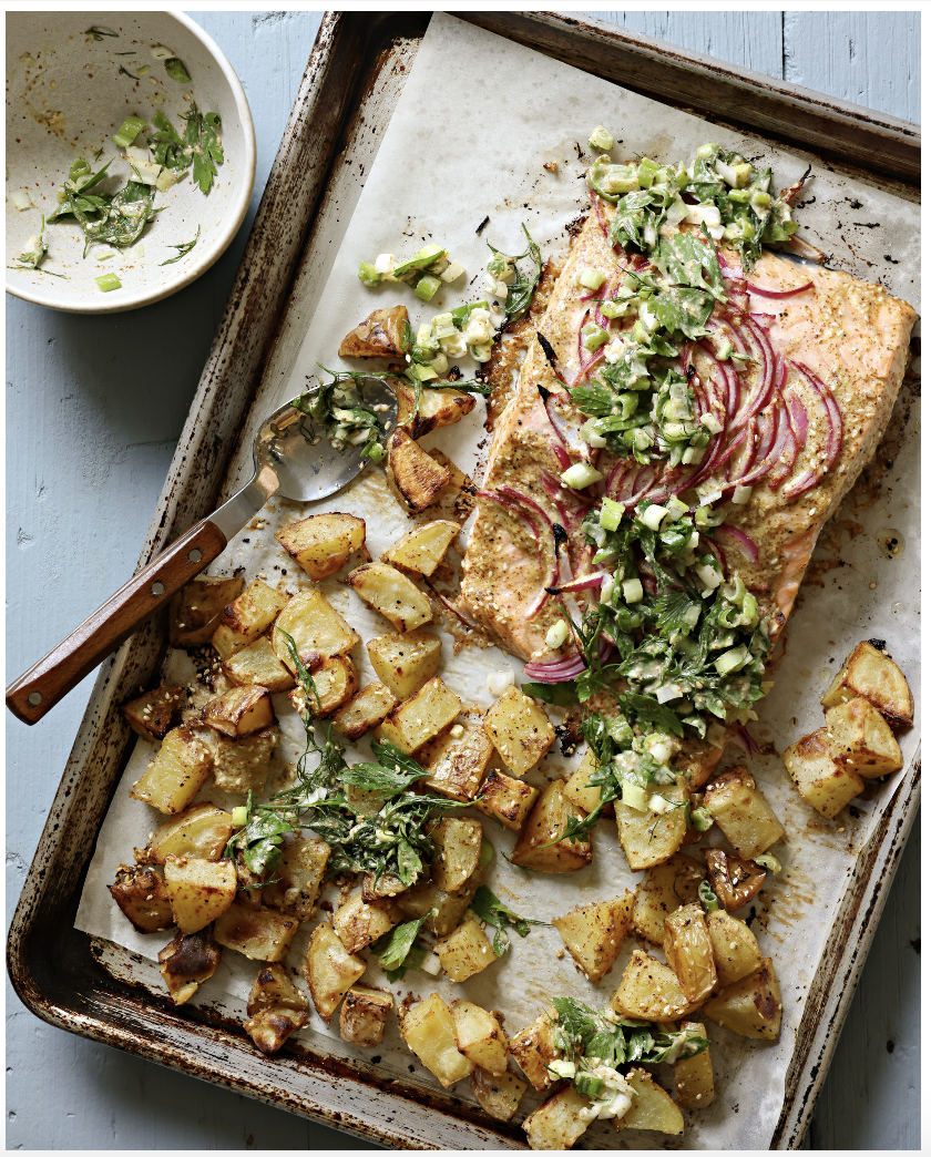 Herby Mustardy Salmon and Potatoes recipe here.