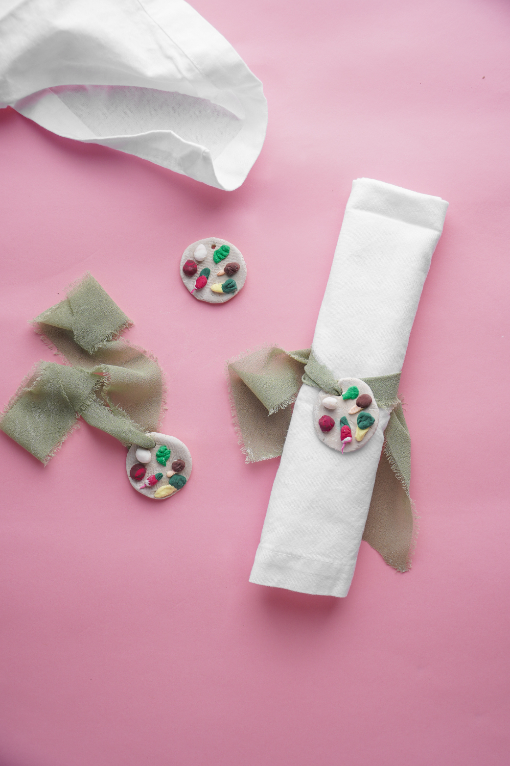 6- Add ribbon: Thread a piece of ribbon through the hole and tie it around a napkin.