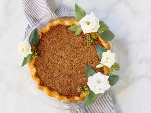 The recipe I look forward to most each fall is Granola Pie. Granola Pie is a nut-free “pecan pie” that my local bakery makes every November. My family has been buying it for years, and it’s always gobbled up.