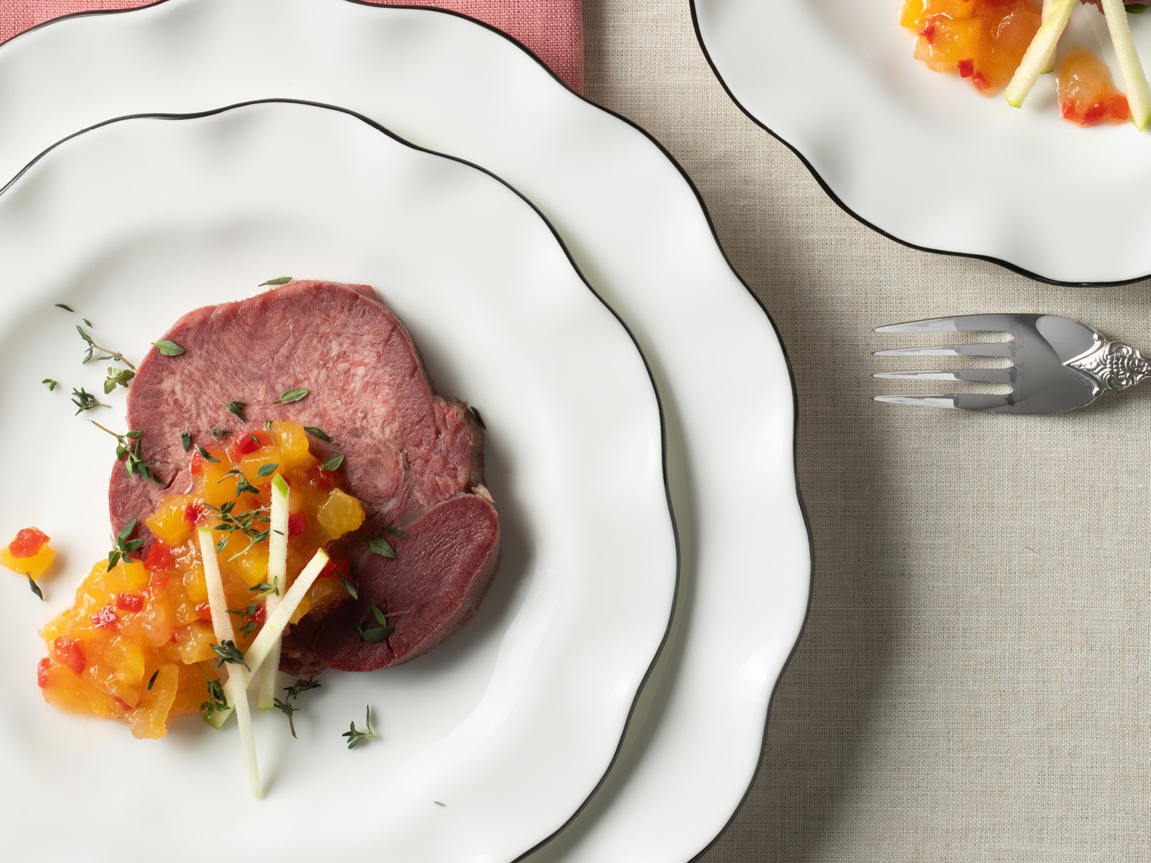 I’ve served tongue many times over the years, but after seeing a photo of an elegantly prepared version at a friend’s sheva brachos, I realized it could be something more. This recipe is my take on that inspiration, finished with a mango-ginger chutney that brightens and elevates the dish while honoring tradition.