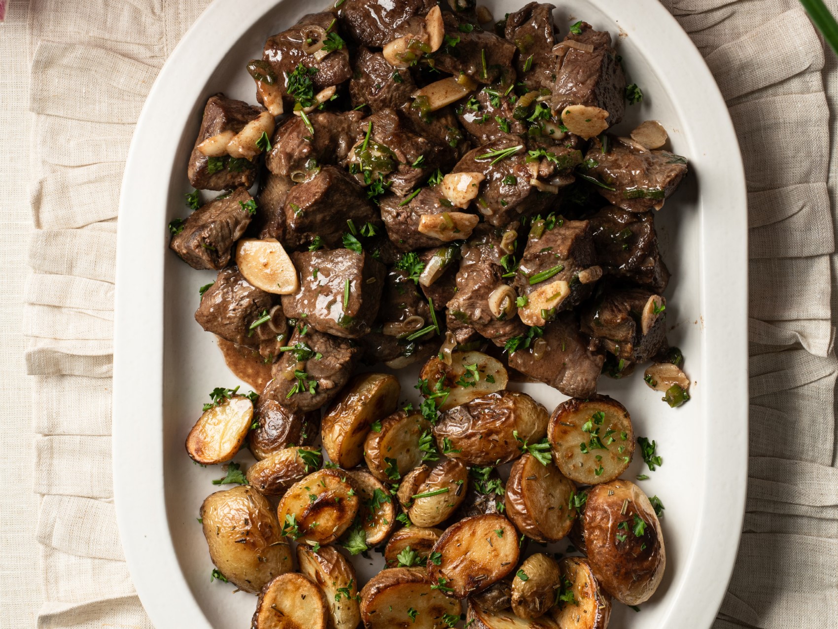17. Pan-Seared Garlic Steak Bites with Roasted Rosemary Potatoes by Chef Suzie Gornish