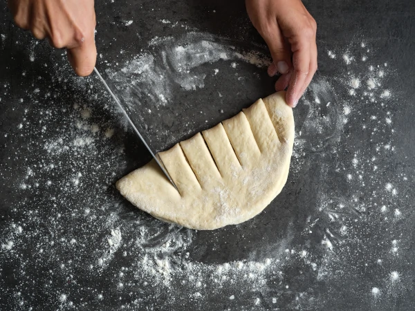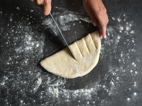 With a sharp knife, make 8 short cuts on the edge closest to you, each about an inch in length.