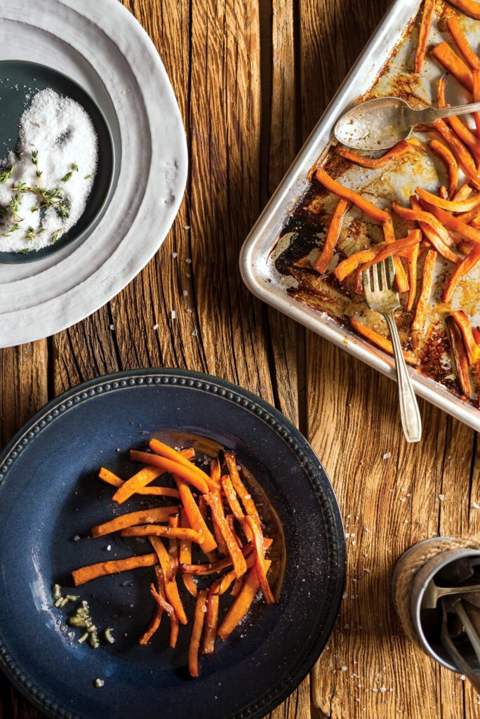 55. Pomegranate Roasted Root Vegetable "Fries" by Erin Grunstein
