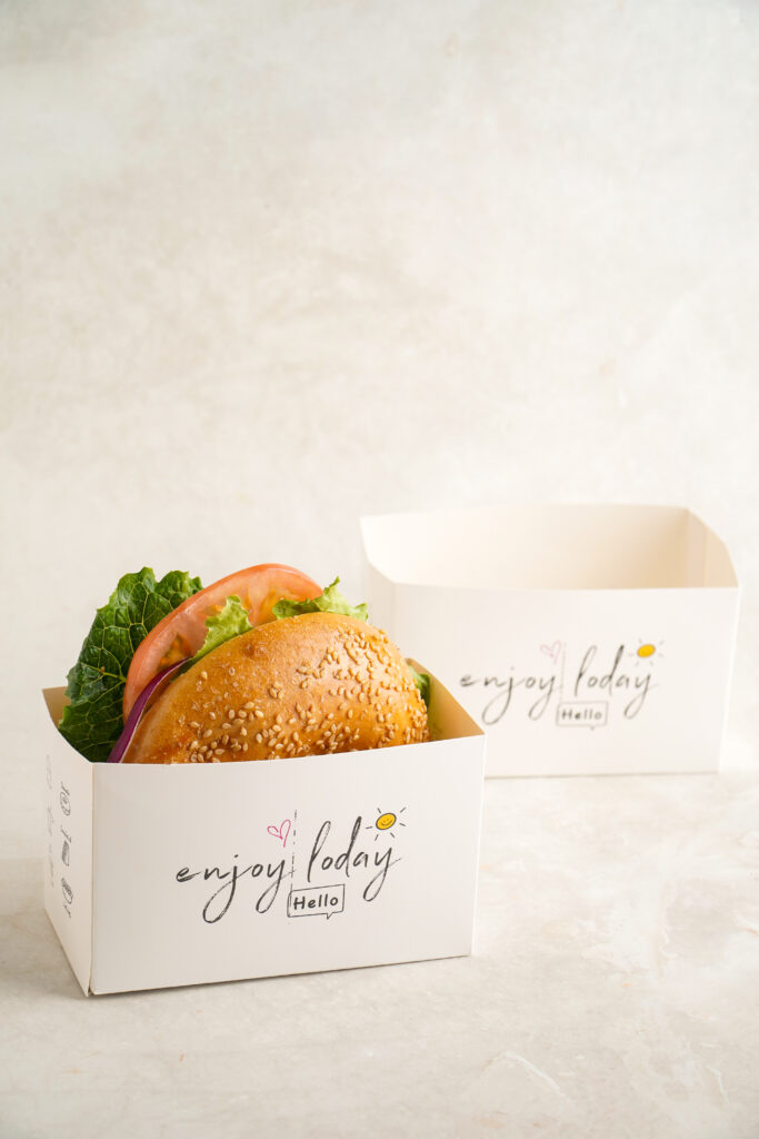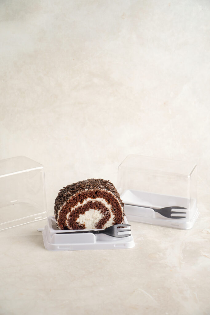These clear, structured containers are perfect for showcasing a beautiful slice of roll cake while keeping it protected and fresh. They feel elevated without being fussy, making them ideal for homemade desserts that deserve to be seen. You can also top the slice of cake with a fresh strawberry, or chocolate candy to complete the look. Each box comes with a wrap around sticker that can be written on or attached with a customized sticker. You can find similar boxes on AliExpress too!