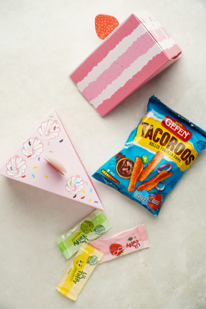These playful, triangular boxes are perfectly sized for individual cake slices or fill them up with snacks and candy! They’re lightweight, easy to carry, and feel just festive enough without being over-the-top. Perfect for classroom or friend gifting.