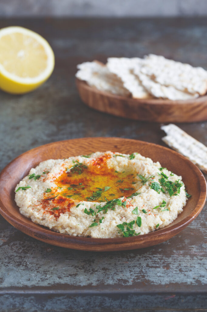 I’m a big hummus person — I put it on everything (it’s almost like my ketchup!). I didn’t want to write a cookbook without a hummus recipe, so I thought of using quinoa to make a kosher l’Pesach version. I was so excited by the idea that I invited some foodie friends to taste-test as I played around with numerous batches and versions to create the perfect Pesach “hummus.” Here’s the version that we all voted the best.