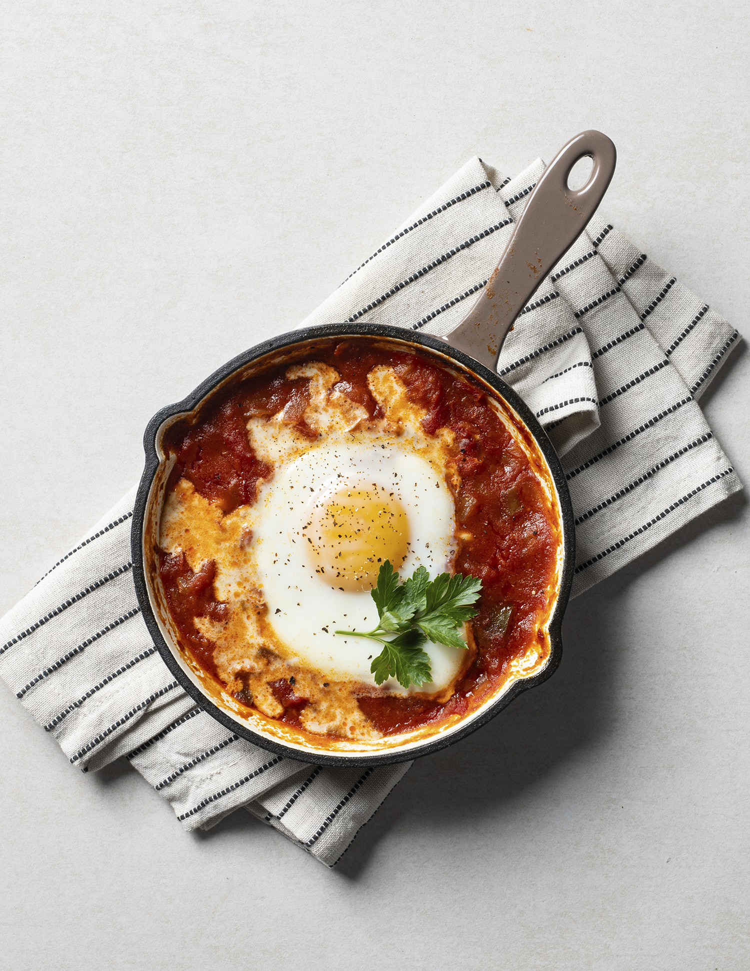 When preparing a batch of matbucha and planning to use some for shakshuka, use pareve utensils so it remains neutral and can be served later with either meat or dairy.