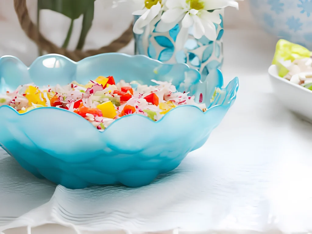 This salad is nice served on its own in individual bowls (as pictured) or as a side garnish on a plate. Either way it is delicious and adds color to your meal!