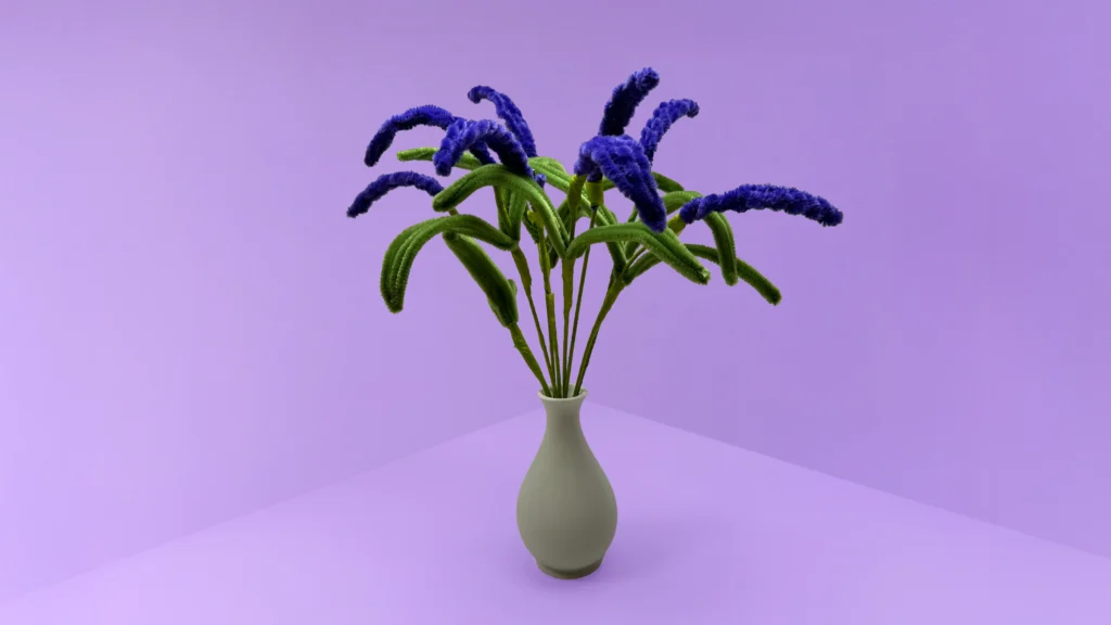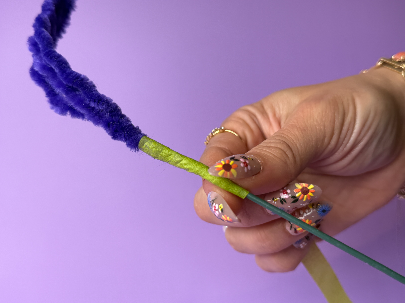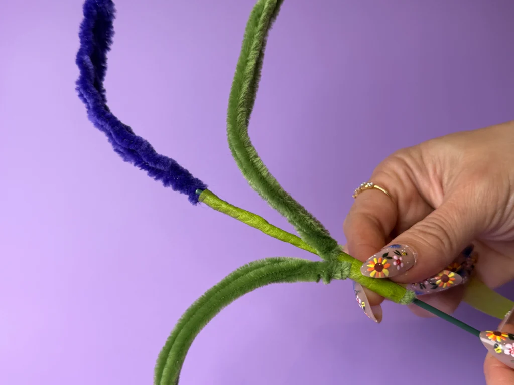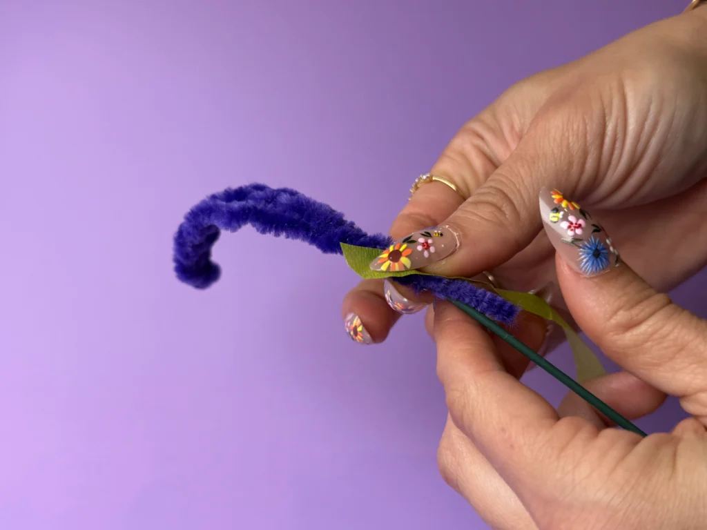 Step 1: Wrap a purple pipe cleaner tightly around a wire stem to form a spiral shape.