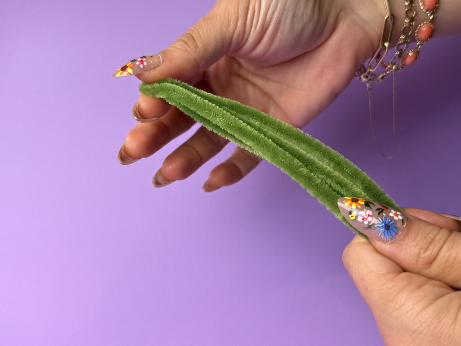 Step 5: Fold two green pipe cleaners in half.