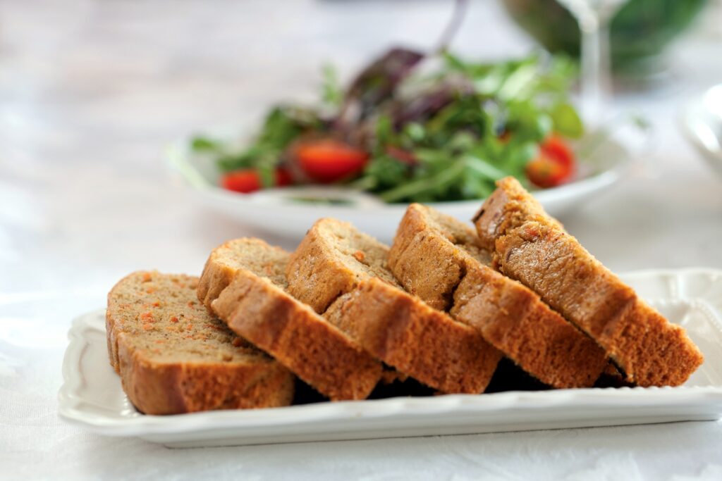 This carrot loaf is a winner whether you are preparing in advance or find yourself in a bind and need a quick, no-mess side dish. It yields a perfect loaf of carrot bread every time … and guaranteed you will have no leftovers.