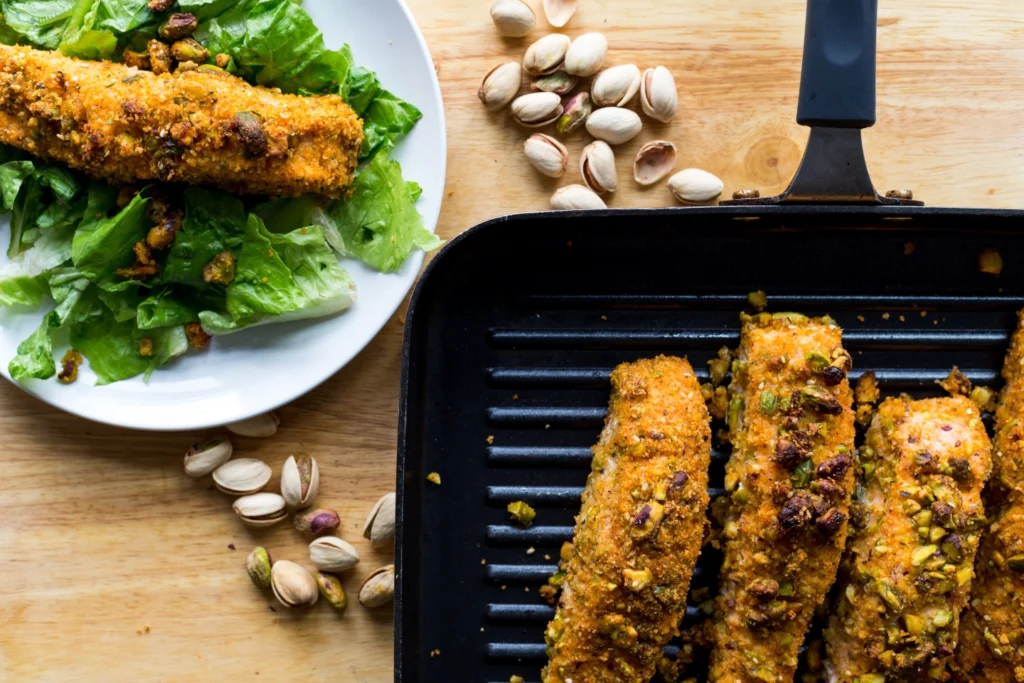 Honey and mustard are always a perfect pairing. Topped with a seasoned pistachio crusting can only be described as sensational.