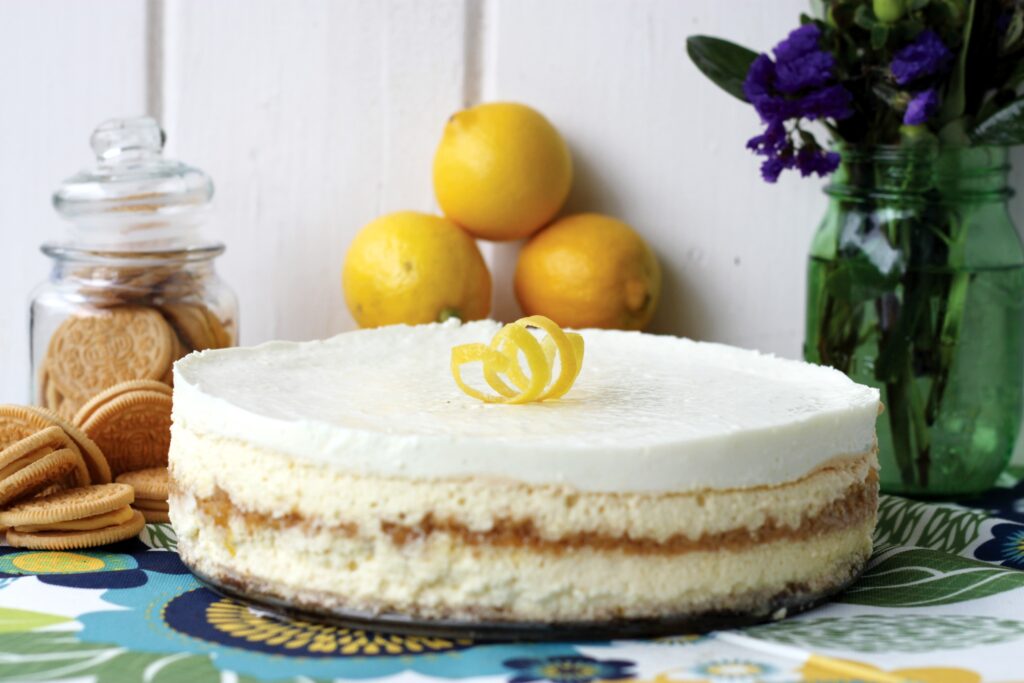 Citrus cheesecake lightens what can be a heavy dessert, and this lemon cheesecake starts with the base, using lemon sandwich cookies in the crust and Greek lemon yogurt in the cake itself.